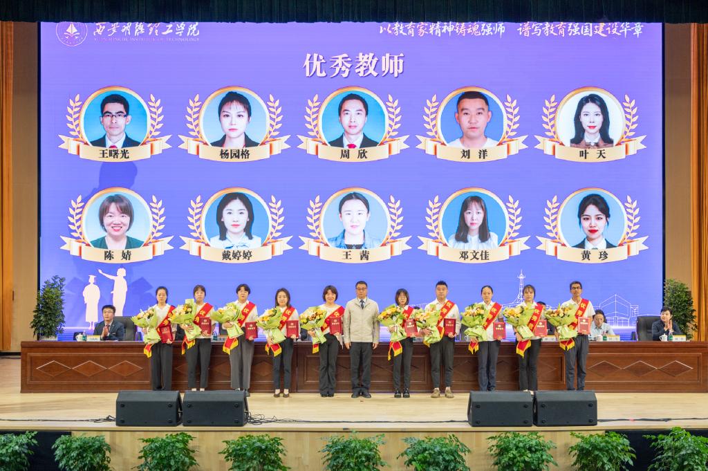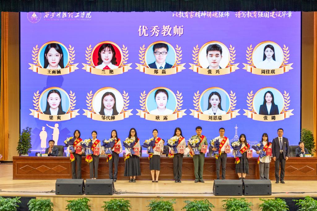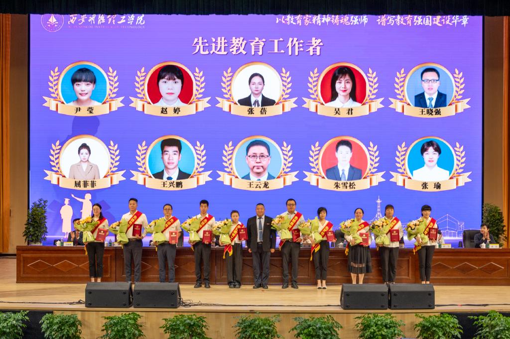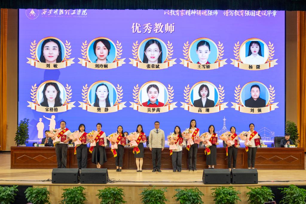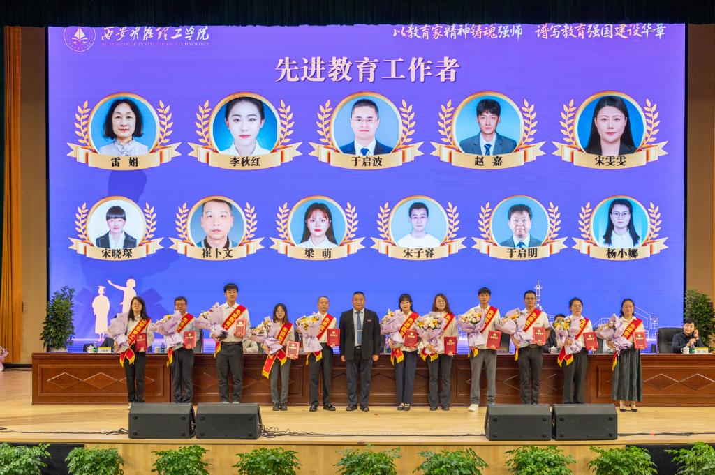 活动结束后受表彰教师代表与学校领导合影留念,大家都表示在今后的工作中会继续落实“立德树人”的根本任务,为学校顺利通过本科教学评估,推动学校高质量发展贡献自己的力量。
