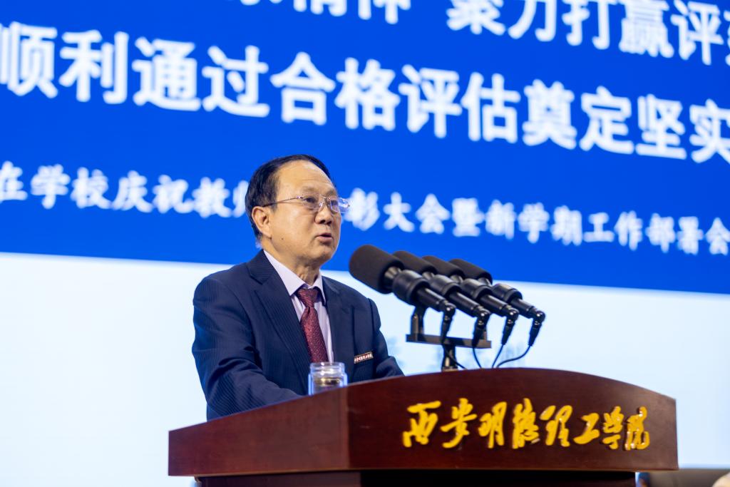 党委书记马川鑫在主持讲话中强调,全校要更加紧密团结在以习近平同志为核心的党中央周围,深入贯彻落实习近平总书记关于教育的重要论述,在省委教育工委、省教育厅坚强领导下,在集团和学校董事会大力支持下,努力办好人民满意的教育,为教育强国、教育强省建设贡献明德力量。希望全体教职工,一是要争做立德树人的大先生,持续深入学习贯彻习近平新时代中国特色社会主义思想,真正成为“四有”好老师;二是要勇做建功立业的奋斗者,始终保持争创一流的精神状态和奋斗姿态,统筹发展和安全,为学校高质量发展提供坚实保障;三是要甘做担当有为的主人翁,坚定不移地朝着全面建成特色鲜明的高水平应用型大学目标迈进。希望全校上下以“一张蓝图绘到底”的战略定力、“一以贯之抓落实”的务实作风、“一腔热血向未来”的奋斗激情,为推动学校顺利通过本科教学工作合格评估作出新的更大贡献,奋力谱写学校高质量发展新篇章。