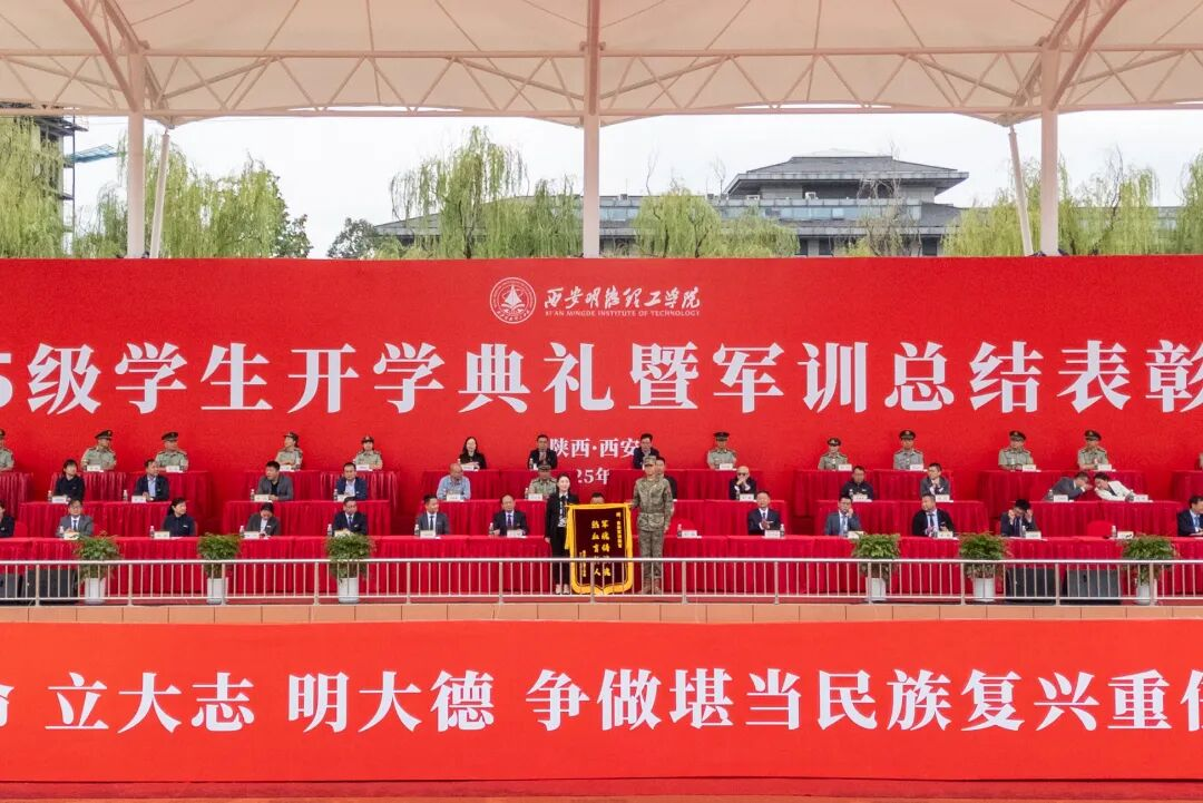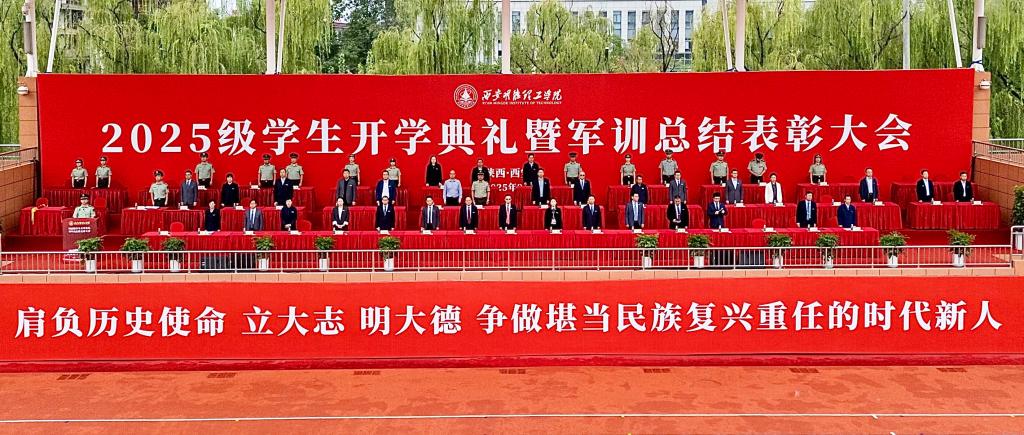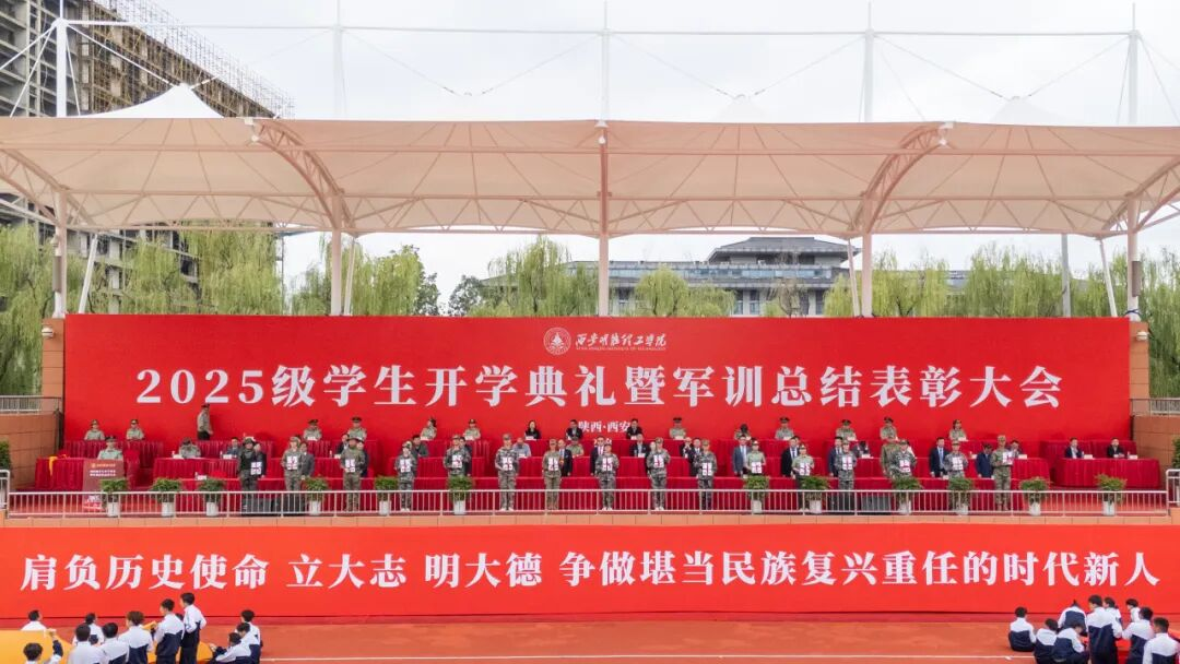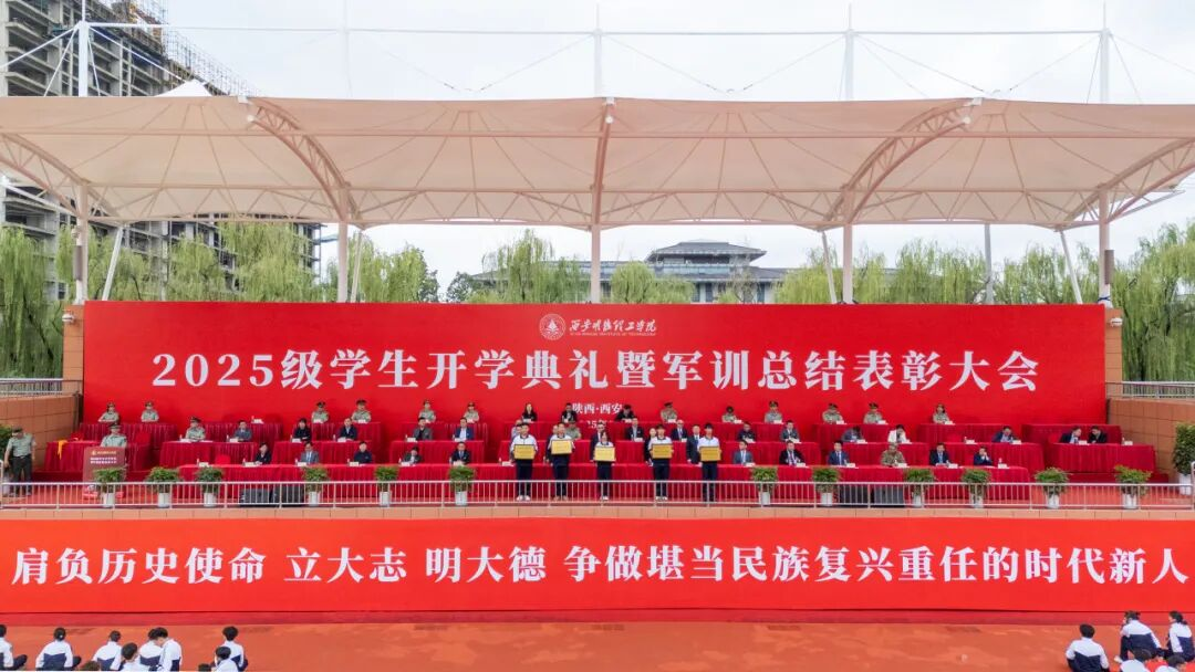 金秋送爽,丹桂飘香。9月19日上午,学校2025级学生开学典礼暨军训总结表彰大会在学校明远运动场隆重举行。陕西金叶科教集团董事局主席、总裁,明德源教育集团董事长、总裁,学校董事长、执行校长袁汉源,明德源教育集团常务副总裁,学校副董事长、执行董事张琳,学校校长王志刚,学校党委书记马川鑫,以及明德源教育集团领导,学校领导,学校各职能部门、教辅单位、二级学院负责人,全体军政干部、2025级新生及家长代表共同出席大会。大会由学校党委副书记、副校长、军训旅政委刘星主持。