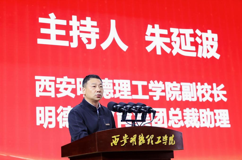 开幕式后,活动进入专家主题报告阶段,西安明德理工学院副校长、明德源科教集团总裁助理朱延波主持报告会。