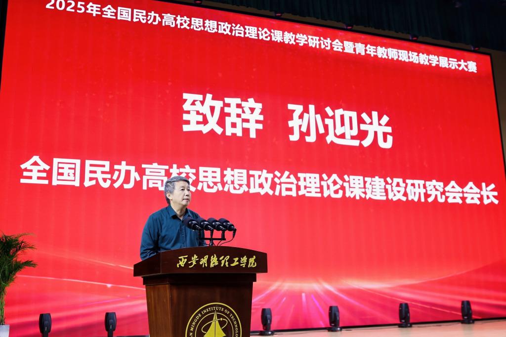 孙迎光在致辞中充分肯定了西安明德理工学院为本次活动所做的筹备工作。他结合当前民办高校思政课建设的形势与任务,强调要聚焦思政课的思想性、理论性、针对性、亲和力,推动民办高校思政课建设走深走实,为培养担当民族复兴大任的时代新人贡献力量。
