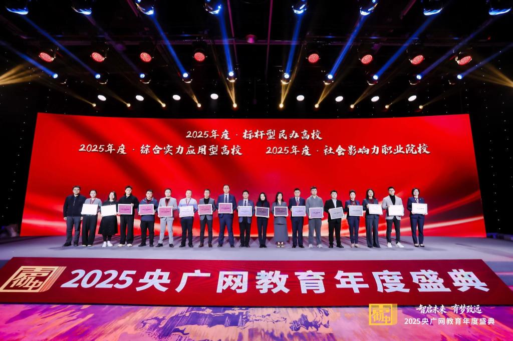 12月26日,于北京举行的中央广播电视总台2025央广网教育年度盛典上,西安明德理工学院凭借其鲜明的办学特色、坚实的育人成果与广泛的社会影响力,荣获大会颁发的“年度综合实力应用型高校”称号。此次获奖,体现了教育行业对学校始终坚持应用型发展道路及其显著办学成效的权威认可。