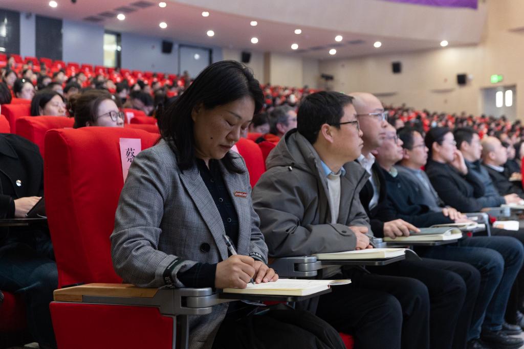 学校党委书记马川鑫在主持讲话中指出,2026年是贯彻落实党的二十届四中全会精神的重要之年,也是全面推进“十五五”规划的开局之年,更是学校迎接本科教学工作合格评估的决胜之年,是学校发展史上承前启后、继往开来的关键一年。他强调,做好今年重点工作,一是要提高政治站位,强化党建引领,凝聚迎评促建的磅礴力量;二是要聚焦中心任务,狠抓责任落实,确保各项工作落地见效;三是要坚持立德树人,弘扬优良作风,激发干事创业的内生动力;四是要树牢底线思维,统筹发展安全,筑牢学校事业发展的坚固屏障。希望全校各级党组织、各单位切实提高政治站位,细化任务清单,压实工作责任,强化协同联动,狠抓落地落实,以高质量党建引领保障各项工作提质增效。希望全体师生员工树牢“全校一盘棋”思想,强化爱校荣校意识和主人翁担当,把个人发展融入学校高质量发展大局,以饱满的热情、务实的作风、昂扬的斗志,积极投身迎评工作和学校建设各项实践,共同为顺利通过本科教学工作合格评估,实现“十五五”良好开局,加快建设特色鲜明的高水平应用型大学,推进教育强国建设贡献智慧和力量!