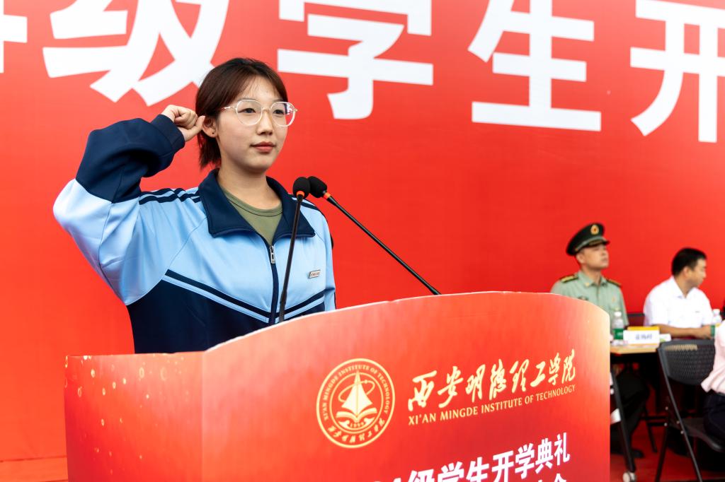 同时他对2024级全体新生提出三点建议:一是要求真务实、堪当栋梁。学生的主业就是学习知识,在学习阶段一定要把基石打深、打牢,做到求真理、悟道理、明事理,丰富学识、增长见识。珍惜在明德理工学习的大好时光,求真学问,练真本领,为争做国家和社会栋梁打好基础。二是要修养人格、高度自律。高尚的人格是一个人在社会立足的基本,坚韧不拔的毅力是成就事业的基础。希望同学们心怀感恩,善良宽厚包容;修养品行,坚韧挺拔屹立,以高度的自律精神和不断求索的态度过好美好的大学生活,不负韶华、不负时代。三是要自信自强、刚健有为。生逢伟大时代,作为明德理工的学子,要坚定不移听党话、跟党走,努力涵养天行健、君子以自强不息的精神气质,在强国建设、民族复兴伟业中,以自己的扎实学识和辛勤努力,担当重任、奋斗有为,展现新时代青年昂扬的精神风貌。