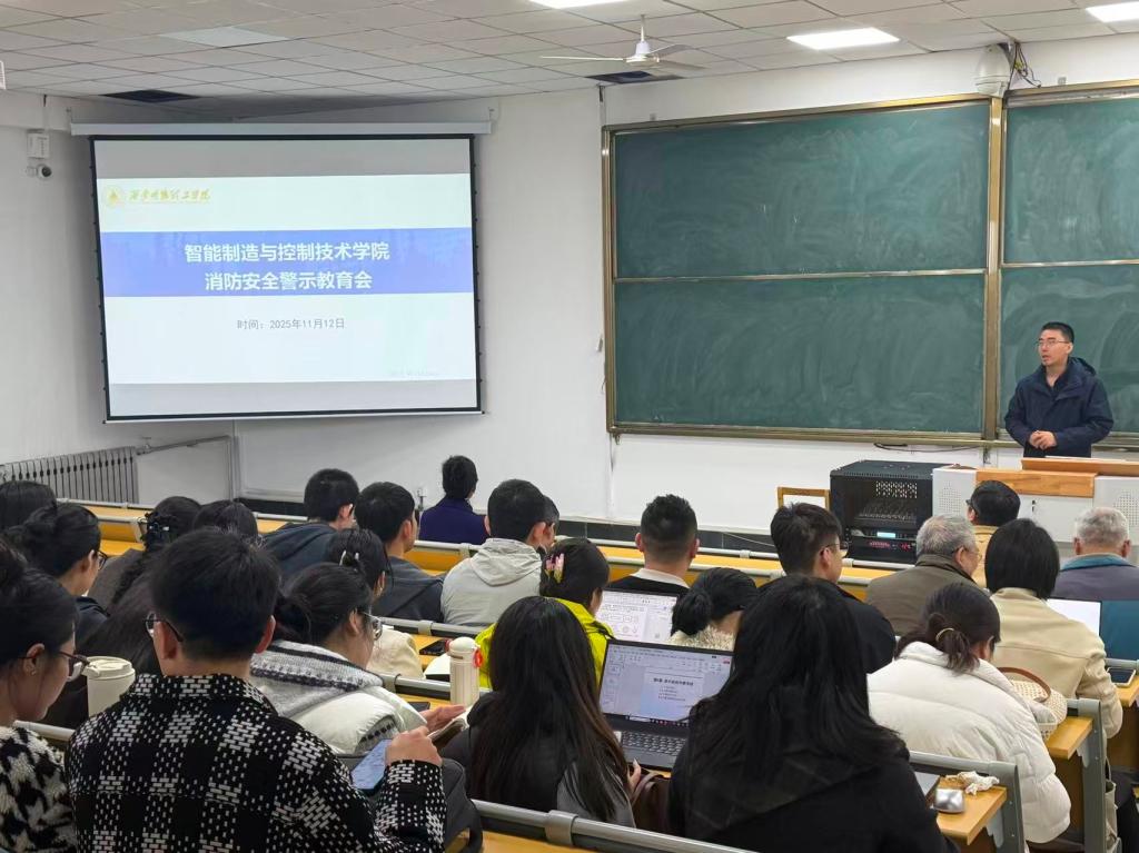为全面落实校园消防安全责任,扎实推进教育教学质量提升,智能制造与控制技术学院于2025年11月12日召开全院教职工大会。会议由副院长李建勇主持,围绕“消防安全教育”和“期中教学诊断评估”两大主题展开部署,学院全体教职工参加会议。