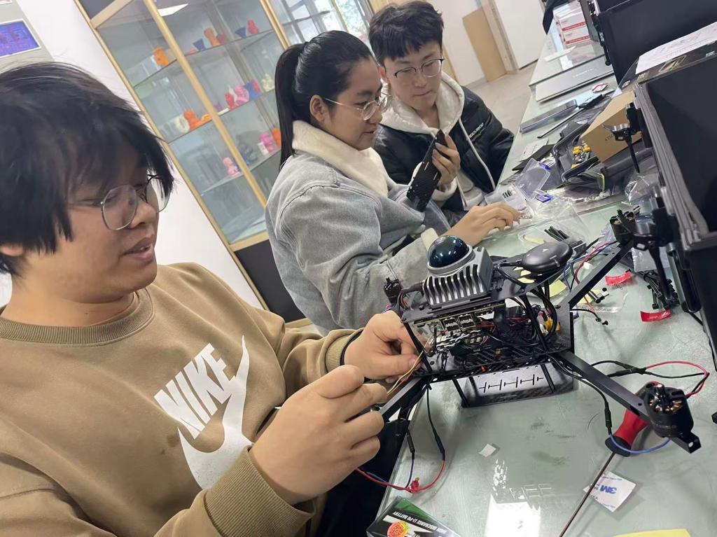 培训现场,工程师围绕无人机硬件组装、电路调试、系统编程等核心内容,结合实际项目案例进行拆解教学。同学们以小组为单位,在工程师的指导下,从零部件辨识、线束连接到设备联调,全程沉浸式地参与实操,现场既有思维碰撞的交流声,也有工具操作的实操音,学习氛围浓厚。