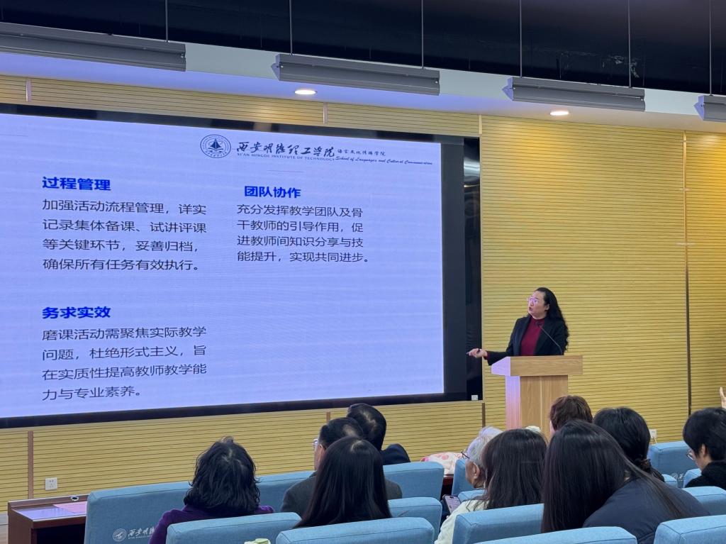 会议第二项,柴芸副院长从学校教学评建总体要求切入,对学院当前的教学评建工作进行系统部署,对省厅数据核查诊断评估、省教育厅预评估正式评估的全过程进行了详细说明。柴芸指出,学院必须严格按照学校评建时间节点,全面做好数据填报、材料更新、全院教职工合格评估应知应会宣贯、实验室讲解准备、教学资料调阅等核心任务。