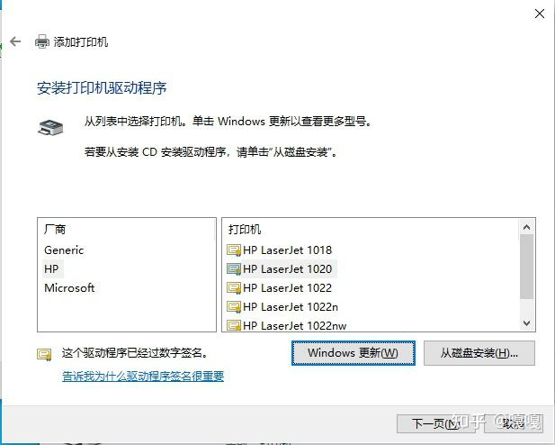 如笔者使用的HP LaserJet 1020打印机,直接点安装,打印机驱动就会预装到系统的驱动程序库里,无需等待其连接完成。
