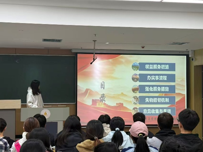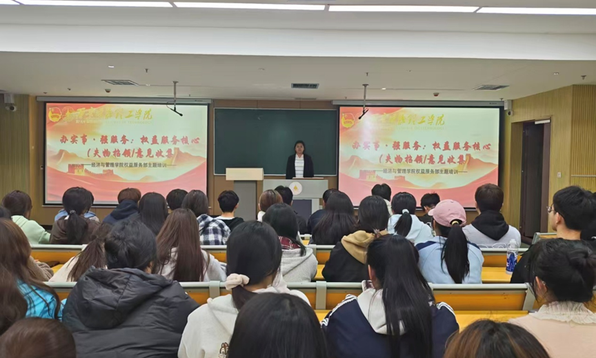 为锻造政治坚定、能力过硬、作风扎实的团学骨干队伍,提升新一届团学骨干的工作能力与综合素质,确保权益服务工作高效、规范开展。10月30日,经济与管理学院权益服务部培训大会于7号楼303顺利召开。本次培训以办实事强服务为导向,围绕权益服务核心工作(失物招领/意见收集)展开,部门骨干们齐聚一堂,共同解锁权益服务新技能,为校园权益保障工作注入青春动能,为构建“规范有序、务实高效、学生信赖”的校园权益服务体系注入核心动能。