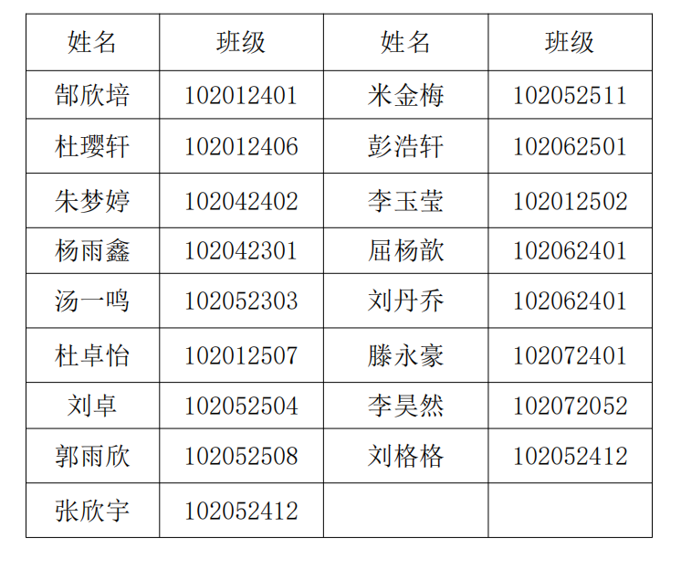 学院团委根据材料初审与现场面试的综合成绩,确定推荐学员名单。为广泛接受全院师生的监督,确保选拔结果的公信力与权威性。现将推荐名单公示如下: