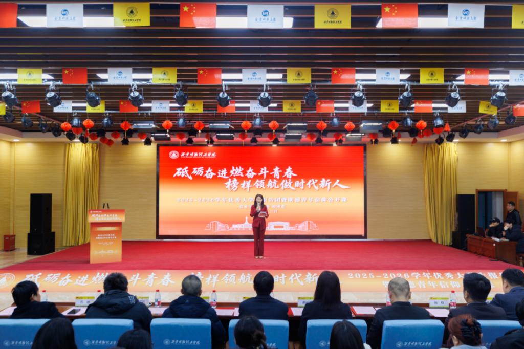 为全面展现明德青年学子奋发进取的精神风貌,进一步营造“学在明德”创先争优的良好氛围,3月19日晚,2025-2026学年优秀大学生报告团暨明德青年信仰公开课启动仪式在建德楼203报告厅隆重举行。党委学生工作部、党委组织宣传部、校团委、教师发展中心、马克思主义学院负责人及各学院党委(党总支)副书记、新疆驻派教师、2024级、2025级辅导员及300余名学生参会。宣讲会由学生李玲艺主持。