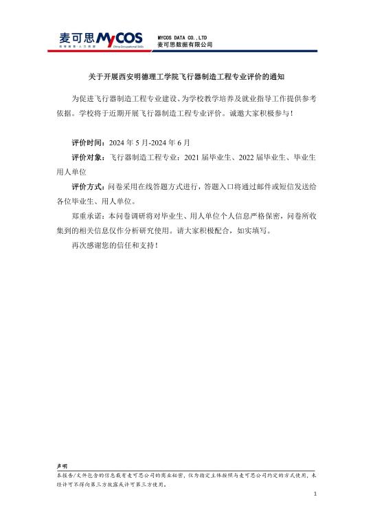 关于开展西安明德理工学院飞行器制造工程专业评价的通知