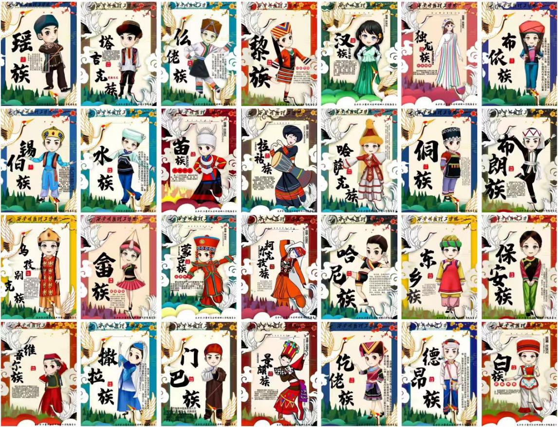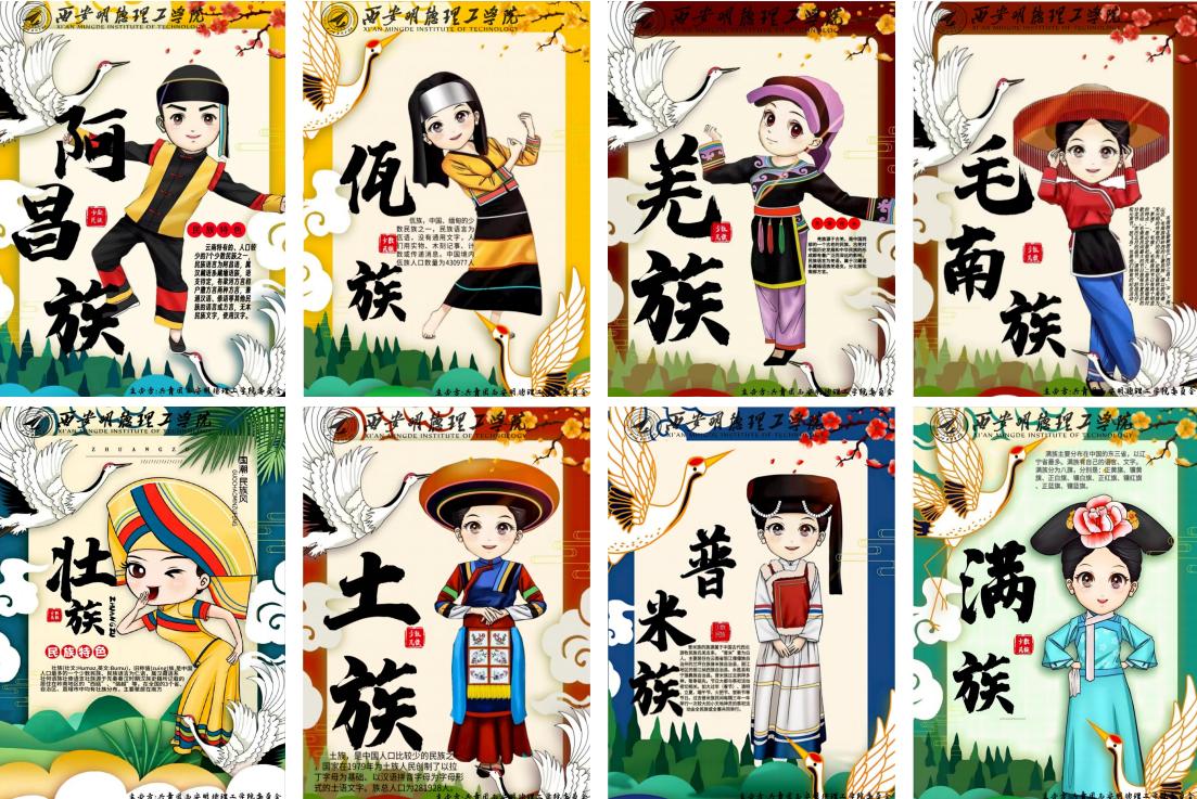 海报作品,一张张精心设计的民族主题海报依次排开,创作者们结合民族特色元素进行创作,画面色彩丰富、构图生动,将不同民族的服饰特点、民俗风貌以直观的方式呈现出来,每一张海报都凝聚着同学们对民族文化的细致观察与创意表达。
