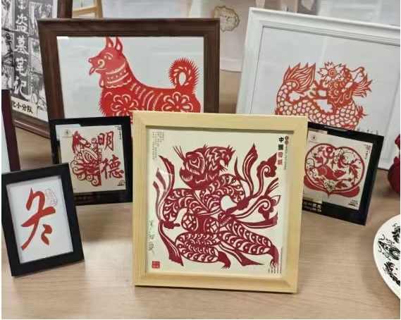 巧夺天工的剪纸,将传统手工艺的“工匠精神”体现得淋漓尽致,定格了各民族的独特风情与人文景观。这些兼具观赏性与文化内涵的剪纸作品,不仅是同学们匠心独运的结晶,更是各民族优秀传统文化在明德校园焕发新生的生动写照。
