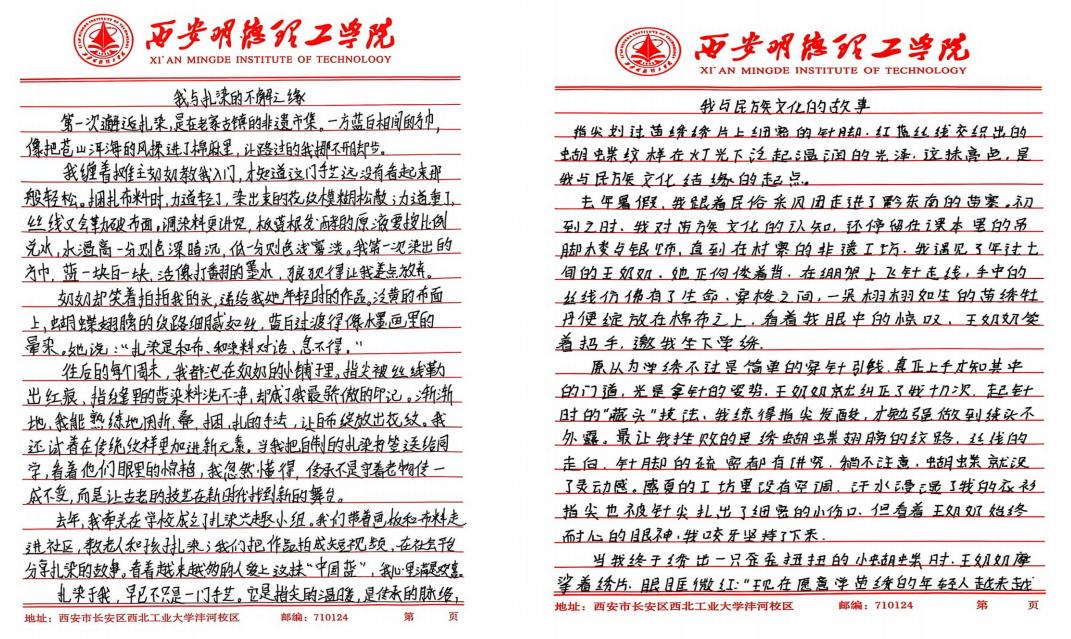 “我与民族文化的故事”征文活动同样反响热烈。同学们以笔为媒,将个人的亲身经历与深刻感悟诉诸文字。征文中,既有学习民族传统技艺时的艰辛与收获,也有参与民俗活动时的难忘瞬间;既有对民族文化传承与创新的理性思考,更有在民族团结互助中发生的温暖故事。