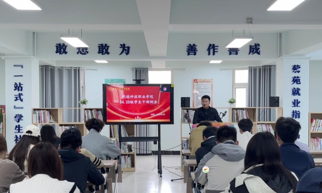 4月2日下午,明德科技职业学院团委在“一站式”学生社区菊苑就业指导中心召开学生干部工作会,为评估工作凝聚青春合力。工作会采取“线上+线下”双线并行模式,覆盖两个校区。学院团委书记郭庆、团学干部、各班级团支部书记、班长等70余人参加。