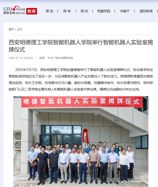 据了解,未来西安明德理工学院将不断深化校企业产教融合,培育产学研用办学特色,以智能机器人实验室建设为平台,提升服务地方经济社会的能力,谱写产教融合赋能区域高质量发展的新篇章。(消息来源:西安明德理工学院)