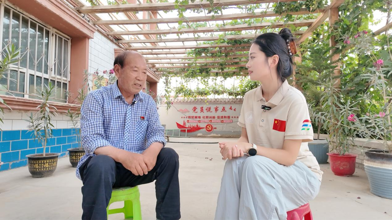 实践队成员与“红枣爷爷”交流(西安明德理工学院供图)