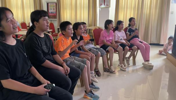 7月14日下午,西塔提让村的红领巾课堂上,队员们带领孩子们学唱普通话儿歌。孩子们跟着旋律认真学唱,在歌声中感受普通话的韵律之美。队员们还把一些常用词汇编进儿歌里,让孩子们在传唱中加深记忆。“以前孩子只会说几句简单的普通话,现在跟着哥哥姐姐们学唱歌,会说的词越来越多了,还经常教我们唱呢。”村民麦麦提开心地说。