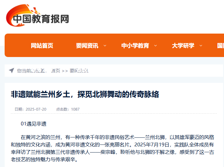 在黄河之滨的兰州,有一种传承千年的非遗民俗艺术——兰州北狮,以其雄浑豪迈的风格和独特的文化内涵,成为黄河非遗文化的一张亮丽名片。2025年7月19日,实践队全体成员有幸拜访了兰州北狮第三代非遗传承人——柴宗峰,聆听他与北狮的不解之缘,感受到了这一古老技艺的独特魅力与传承艰辛。