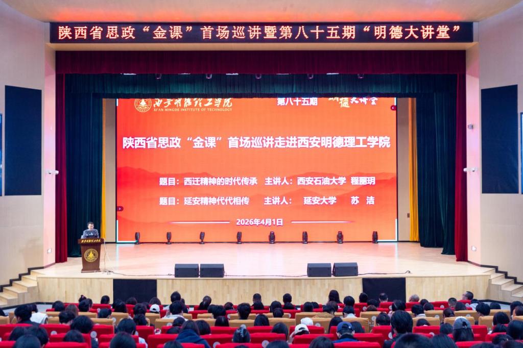 为充分发挥省级思政“金课”示范引领、辐射带动作用,推动思政课建设守正创新、提质增效,4月1日下午,陕西高校思政“金课”在西安明德理工学院的首场巡讲暨第八十五期“明德大讲堂”在四季廊桥报告厅隆重举行。校党委书记马川鑫,学校相关单位负责人、全体思政课教师及学生代表1000余人参加了授课。