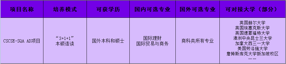 SQA高等教育文凭是一种得到国际公认的高等教育学历。为了引进国外优质教育资源,促进中英两国的教育合作与交流,在英国苏格兰政府和英国文化委员会(BC)的支持下,经中国驻英使馆教育处认证,在教育部考试中心、劳动部职业技能鉴定中心、中国企业联合会等多家机构的支持下,中国留学服务中心(CSCSE)与英国苏格兰学历管理委员会(SQA)共同将英国高级教育文凭(Advanced Diploma简称AD)引入中国。2004年西安明德理工学院经SQA授权,成为西北地区唯一的SQA项目教学培训中心。学生在国内获得该文凭后,可以直接就业或进入英国、美国、加拿大、澳大利亚、新西兰、荷兰、爱尔兰、法国、新加坡和马来西亚等多个国家的大学留学续本读硕。我校已成功培养出数千名优秀的SQA毕业生,均已顺利在海外升学,并已完成本科和硕士学位的学习。