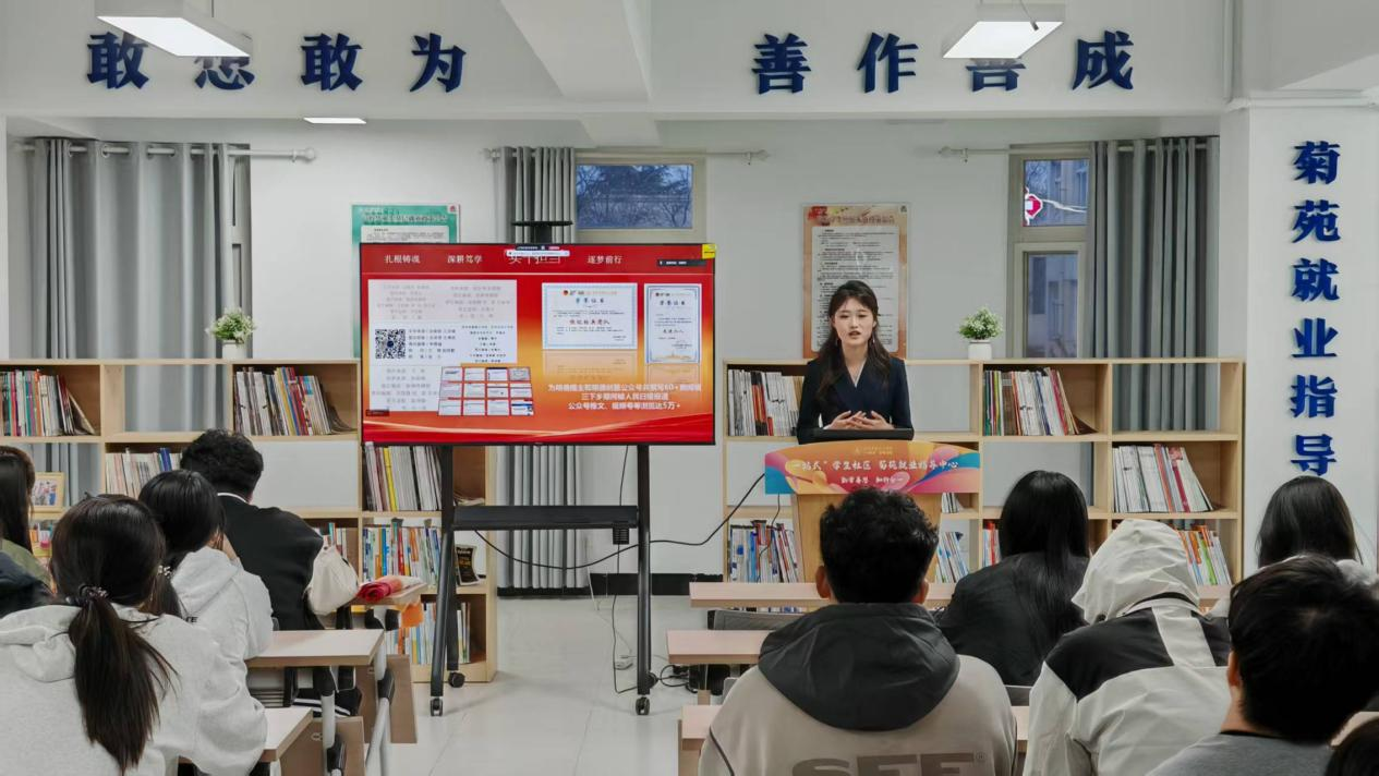 本次活动采用校区联动模式,线下主会场设在长安校区菊苑“一站式”就业服务中心,现场座无虚席莲湖校区学子通过线上直播同步聆听,打破空间限制,实现全员参与。五位优秀大学生代表依次登台,用亲身经历讲述青春奋斗故事,传递榜样力量。