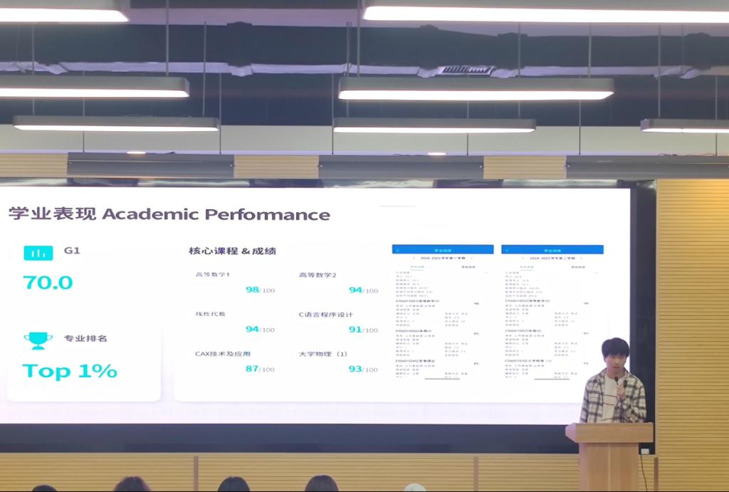 科研实践与个人成长方面,王政杰和周毅鸣同学结合自身参与学科竞赛、科研项目的经历,讲述了从选题、备赛到获奖的全过程,鼓励同学们积极参与第二课堂活动,以赛促学、以练促能,在实践中锤炼创新思维、团队协作能力和专业实践能力,实现第一课堂与第二课堂的协同发展,以综合素质的提升助力学校人才培养质量提升,为迎评工作添砖加瓦;有入伍经历的贺伟龙同学,分享了军营生活的磨砺与成长,讲述了军人作风对学业和人生的深刻影响,传递了严于律己、勇于担当、坚持不懈、精益求精的奋斗精神,引发在场同学的强烈共鸣。