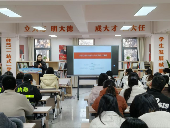心理健康宣传教育先行。多形式普及心理知识。全年开展心理健康主题班会300余场,覆盖学生20000余人次;开设“明心育人”在线课堂,累计发布推文12篇;推选3名学生参加省级心理健康科普知识竞赛,1个作品参加省级心理情景剧评选,2名学生和1名老师参加省级心理委员成长训练营;邀请校外专家开展2场学生心理健康主题讲座,累计线下参与学生2000余人次。
