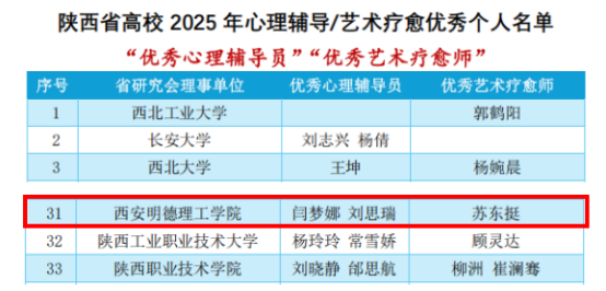 智能制造与控制技术学院辅导员闫梦娜、艺术与设计学院辅导员刘思瑞获评“优秀心理辅导员”。