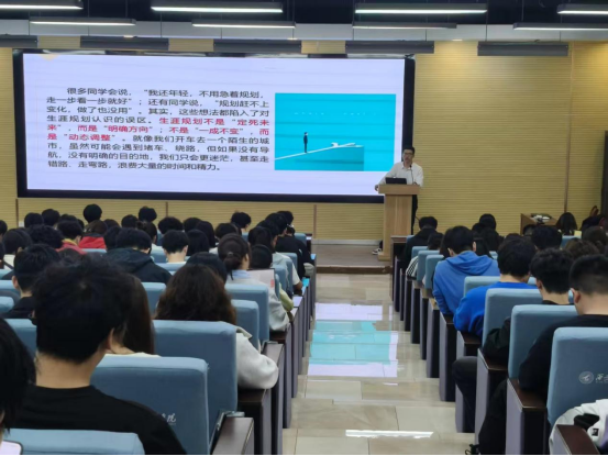 郭学鹏老师以“心有方向,行有力量——大学生生涯规划与求职心理调适”为题,从为什么大学生必须做好生涯规划、如何做好大学生生涯规划、以从容心态应对求职挑战等三个方面为心理委员进行了讲授,阐明了“生涯规划不是定死未来,而是明确方向;不是一成不变,而是动态调整”的道、学、术。在培训中,他引用详实的案例,从“知己、知彼、抉择、行动”四个维度深入讲解了生涯规划的核心内容;采用理论讲授法,引导同学们积极使用“迈尔斯-布里格斯人格测试(MBTI性格理论)”“霍兰德职业兴趣测试”“优势与短板清单”“核心需求排序”等正规工具了解自己、规划未来;分享多位本校校友的先进事迹,鞭策同学们尽早开展个人的学业生涯规划、逐步形成个人的职业生涯规划;带领同学们现场聆听《心的方向》《17岁》《大学问》等适合疗愈心灵的歌曲,引导他们学会运用音乐疗愈自我、放松心情、砥砺斗志。本次培训是加强“校-院-班-舍”四级预警防控体系的重要举措,有利于促进班级和宿舍心理委员更好地进行生涯规划,避免陷入“上课摸鱼、考前突击、课余时间沉迷娱乐”的被动消耗状态,做到珍惜时光、锤炼本领、规划未来,弘扬“勤学善思、知行合一”的优良学风,为未来的求职就业做好积极准备。