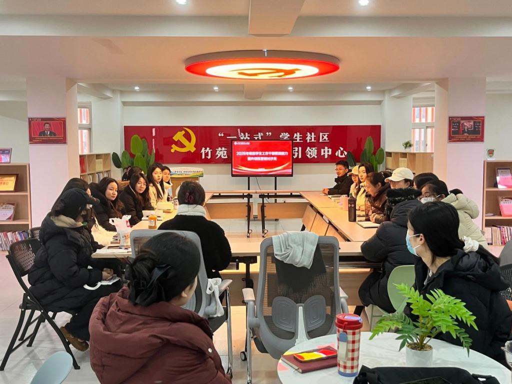 为进一步加强辅导员队伍专业化与职业化建设,切实提升辅导员课题申报能力与科研素养,1月19日至20日,2022级年级组在“一站式”学生社区竹苑党建示范引领中心、梅苑心理辅导站开展辅导员课题研讨沙龙。2022级全体辅导员参加会议,会议由年级组长张蓉主持。