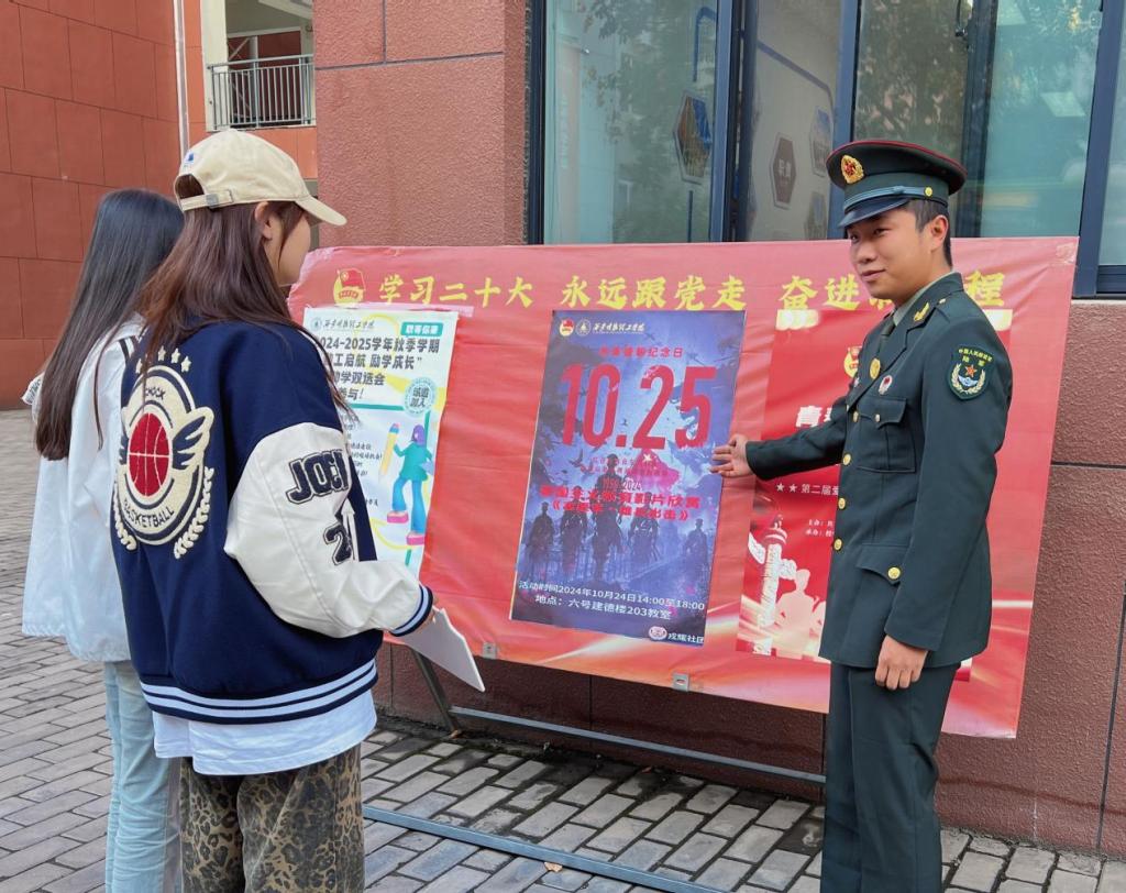 为纪念抗美援朝战争胜利七十四周年,我们西安明德理工学院“戎耀”社团举办特别活动——邀请大家观看电影《志愿军:雄兵出击》。“戎耀”社团是以退役大学生为主体的学生组织,我们始终秉持“退伍不褪色,退役不退志”的信念,心系国防,坚守兵心。