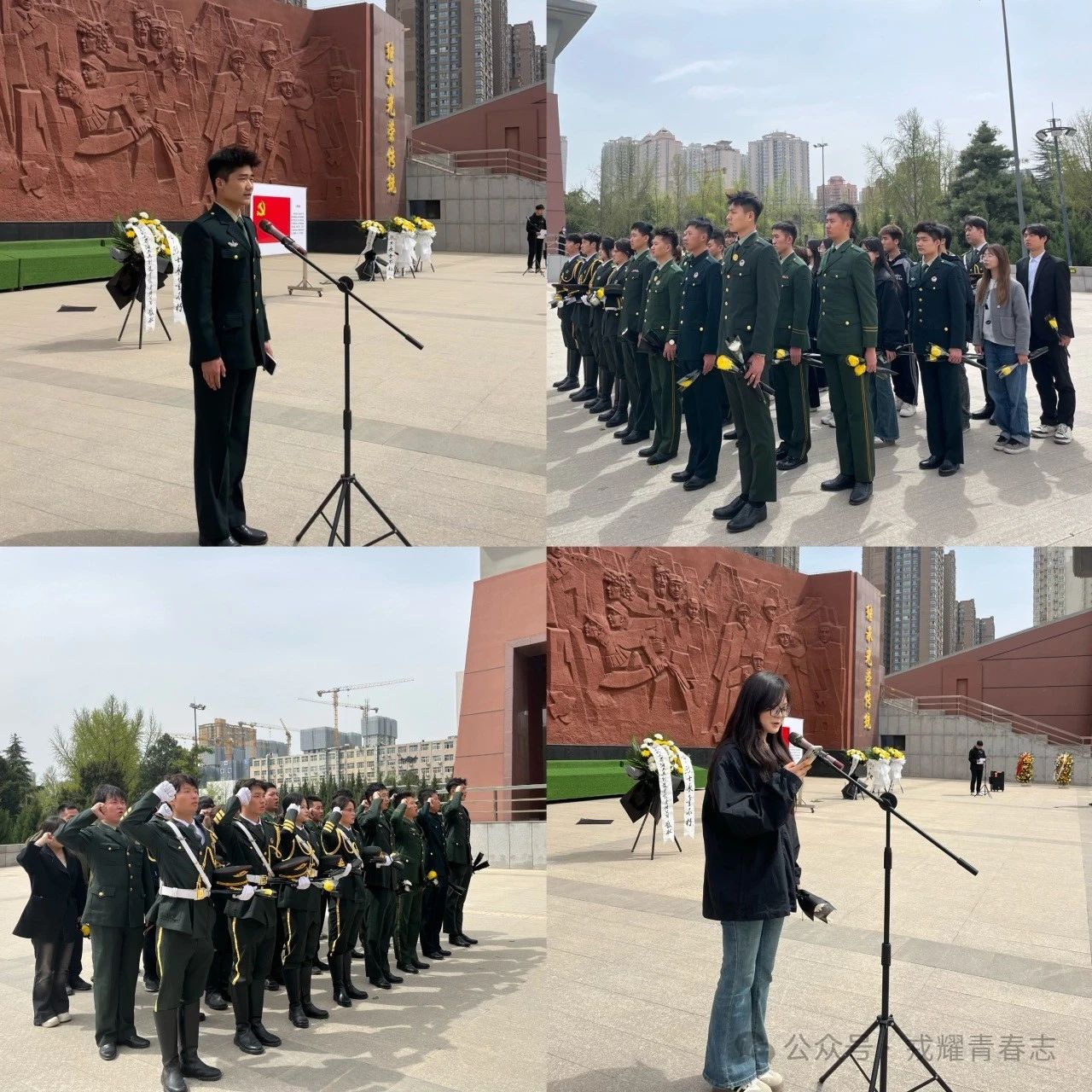 4月1日清晨,西安烈士陵园松柏肃立。我校戎耀社团联合国旗护卫队、西安市退役大学生士兵红十字“三献”志愿服务队等青年团体,以一场庄严的清明祭扫活动,开启跨越时空的精神对话。戎耀社团成员身着统一制服,胸佩自制“薪火徽章”,与退役大学生士兵方阵并肩而立,以挺拔身姿向长眠的英烈致以最深沉的敬意。