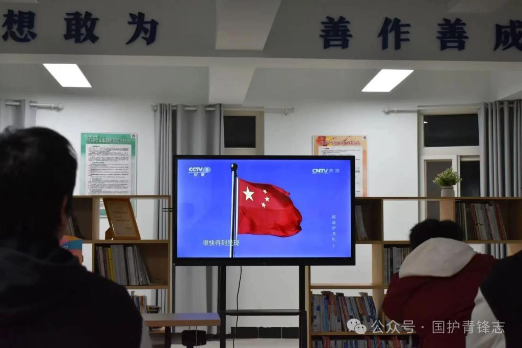 分享会以一部CCTV国旗护卫队纪录片拉开帷幕。镜头里,队员们踏着铿锵有力的正步走过长安街,迎着朝阳将国旗冉冉升起,尽显国护人的使命与担当。队员们屏息望着荧幕,纪录片中的日常训练与执勤,瞬间唤醒了他们对坚持与责任的深刻共鸣。