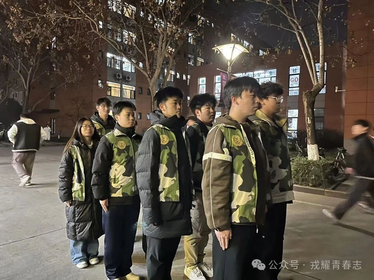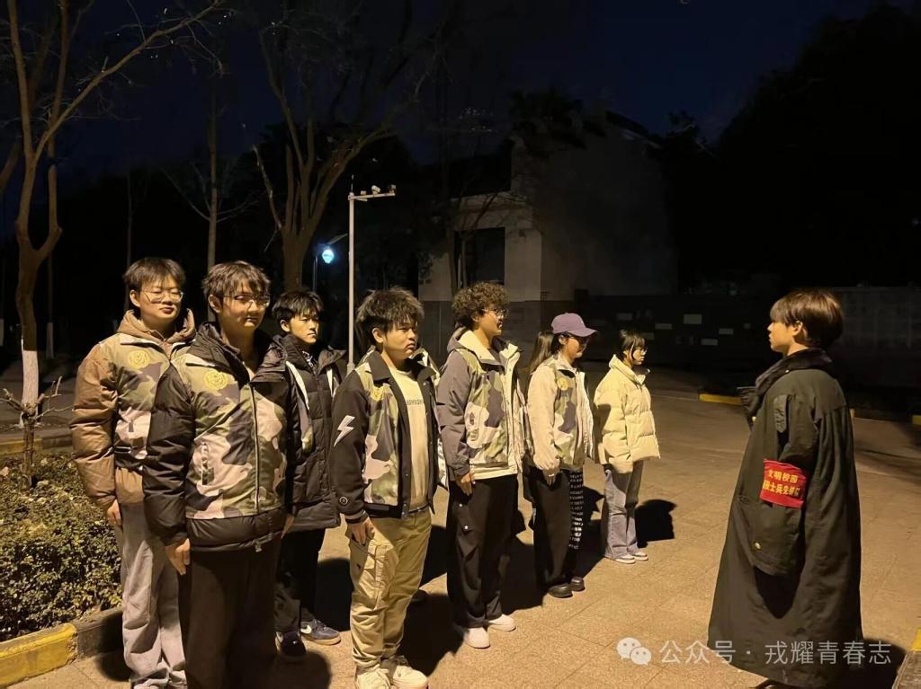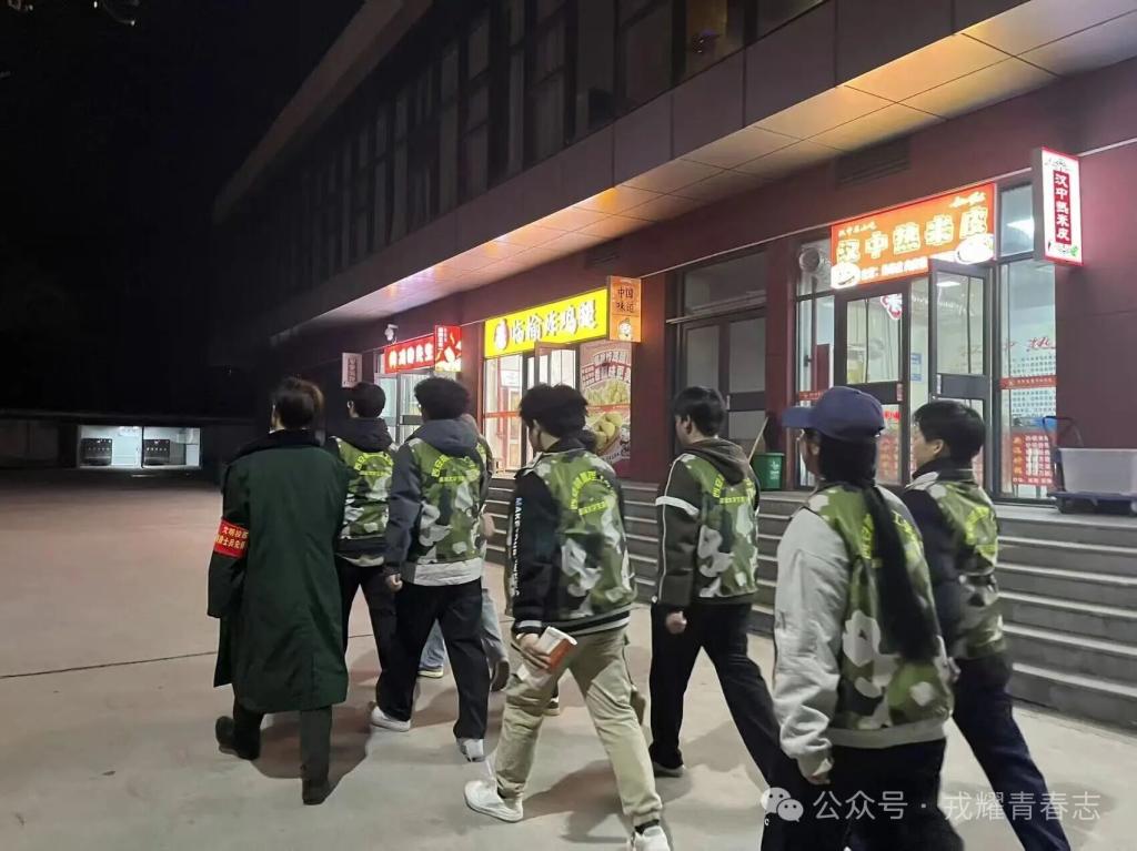 巡逻实施阶段,戎耀国防教育中心的队员们以军事化标准组建巡查队伍,身着统一标识服装,按照划定的巡查路线有序开展工作。针对全方位巡查的要求,队员们采取“分区包片、逐点排查”的方式,对校园各区域进行拉网式检查,不仅对发现的吸烟行为及时劝导制止,还详细讲解禁烟规定与吸烟危害。同时,队员们结合夜间校园环境特点,重点加强对灯光昏暗区域的巡查力度,确保全方位巡查的实效性。