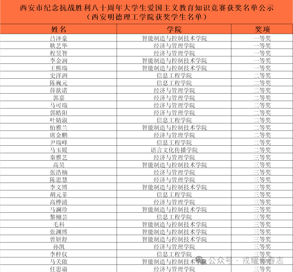 80载岁月峥嵘,抗战精神永存;青春志承家国,答题场上竞风流。近日,西安市纪念抗战胜利80周年大学生爱国主义教育知识竞赛圆满落幕,我校学子以线上作答的形式踊跃参与,凭借扎实的知识储备与赤诚的爱国情怀脱颖而出,斩获优异成绩,用青春行动诠释了新时代青年对伟大抗战精神的传承与坚守。