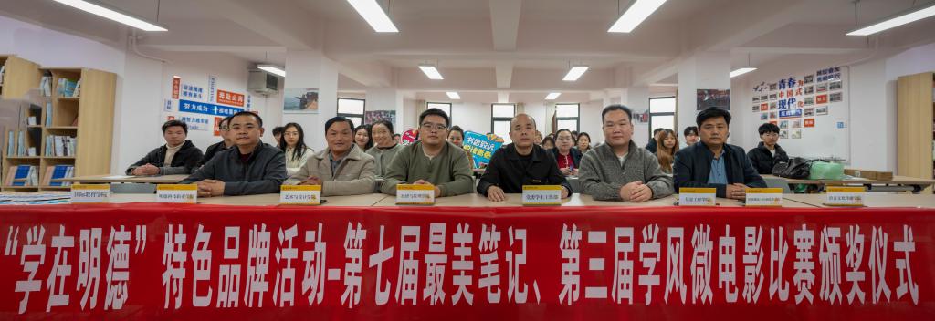 为持续深化学校优良学风建设,进一步打造“学在明德”特色品牌,营造积极向上、创意涌动的校园学习氛围,12月3日,党委学生工作部在梅苑“一站式”学生社区成功举办“学在明德”学风建设系列活动颁奖仪式,对第七届“最美笔记”与第三届学风微电影大赛的获奖师生进行表彰。党委学生工作部、各学院学生工作负责人以及获奖师生参加了颁奖仪式。