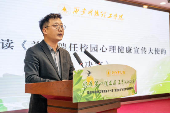会上,童杨梓宣读了《西安明德理工学院关于开展春季学期学生心理健康工作集中攻坚暨心理育人宣传季实践活动的通知》。