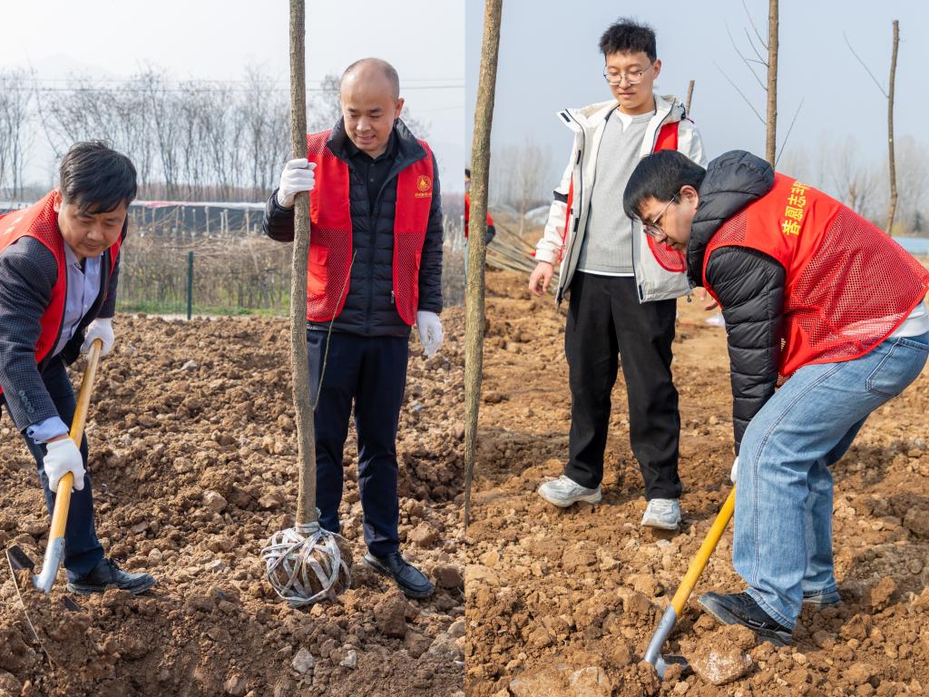 植树现场,参与人员纷纷拿起工具,投入到植树劳动过程中,大家分工协作、默契配合,扶正树苗、挥锹铲土、填平树坑、培土浇水,每一个环节都认真细致,种植现场一片热火朝天,一株株新树苗错落有致,在和煦的春风里迎风挺立,为春日大地增添勃勃生机。