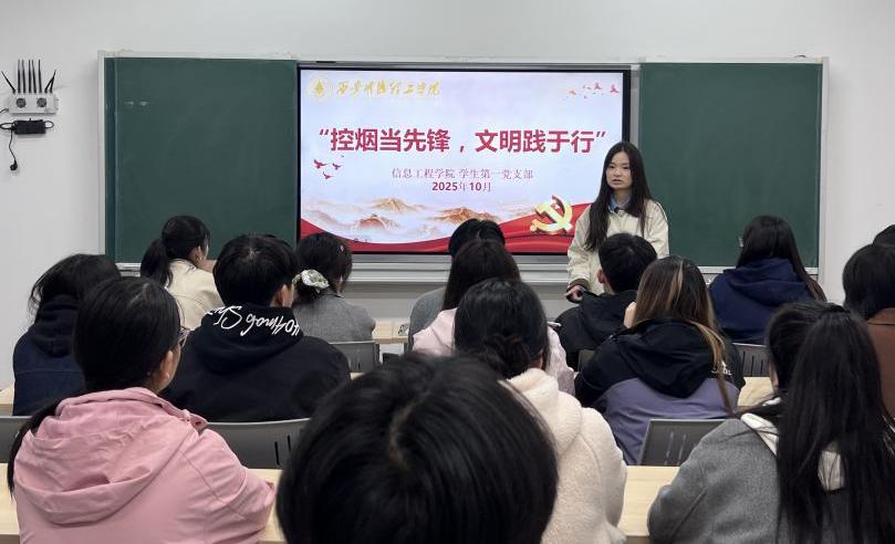 为响应校园无烟环境建设号召,发挥学生党员在文明校园创建中的先锋模范作用,引导支部成员树立健康生活理念、践行文明行为规范。10月19日,信息工程学院学生第一党支部在培德楼106教室开展“控烟当先锋文明践于行”主题党日活动。此次活动由支部书记张蓉主持,全体党员、预备党员及部分入党积极分子共同参与。