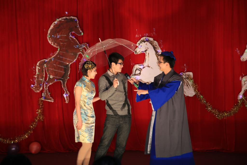 演出在学院艺术体操队开场舞《艺术旋律》中拉开帷幕。吴丁毅院长带领院领导班子向全院教职工致以新年的问候,并向在2013年中获得先进单位和优秀个人颁发了奖状和奖金。随后,图书馆的舞蹈《次仁拉索》,四系的小品《我们爱的好辛苦》,工会的舞蹈《映山红》,招就办的歌曲联唱《春暖花开》等精彩节目一次次把联欢会推向高潮。期间,还进行了4次抽奖活动。