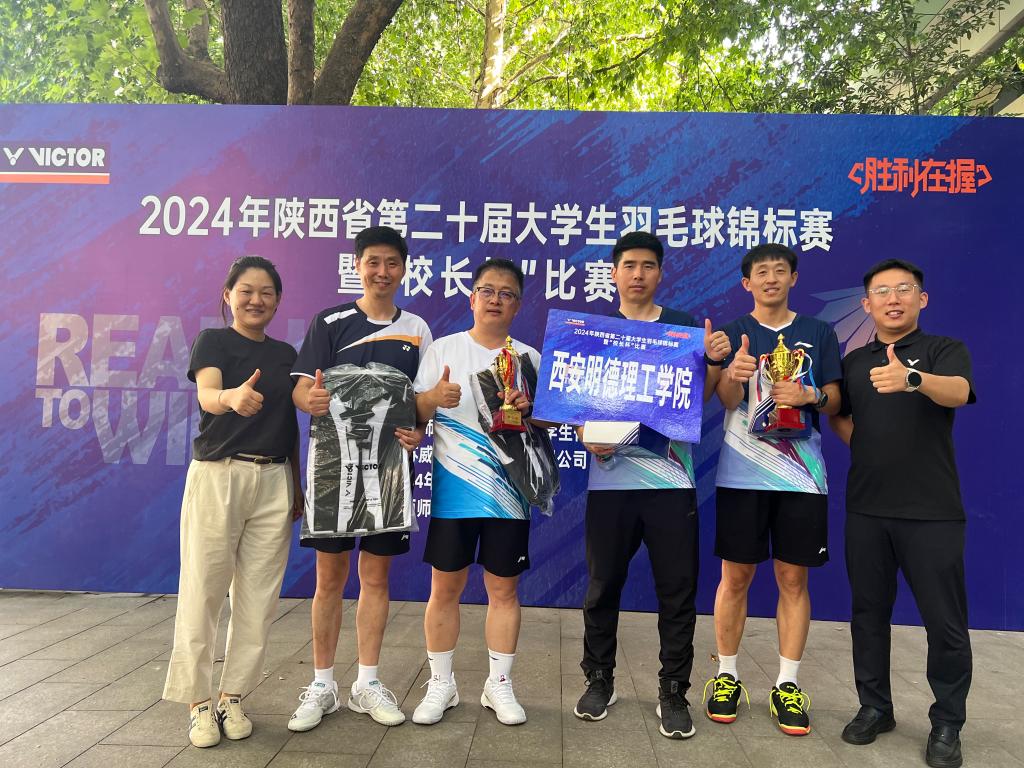 陕西省2024年“校长杯”羽毛球球比赛由陕西省教育厅主办,陕西师范大学、陕西省学生体育协会承办,陕西省学生体育协会乒乓球专业委员会协办,于2024年6月22日至23日在陕西师范大学长安校区上林体育馆举行,我校组织参加的项目有“校长杯”乙组双打赛及园丁乙组双打赛,共4人代表学校参加比赛。经过两天的激烈角逐,西安明德理工学院的参赛团队凭借坚韧不拔的毅力和精湛的球技,突破自我,荣获陕西省“校长杯”羽毛球赛校长乙组第三名、园丁组第五名的佳绩。