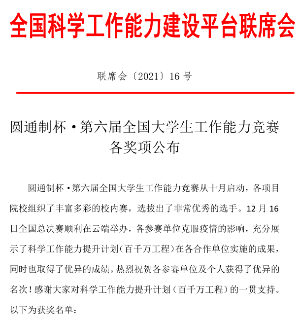 2021年12月16日,“圆通制杯”第六届全国大学生工作能力竞赛全国总决赛在云端顺利举办。我院20名同学在肖慧霞、许萍、张岩、李雪艳、康瑶五位老师的指导下,经过一天紧张的比赛,取得了优异的成绩:荣获个人赛全国一等奖2项,二等奖6项,三等奖6项,优秀奖4项;团体赛全国二等奖1项,优秀奖4项;最佳人气团队奖1项;同时五位老师被评为优秀指导老师,我校被评为优秀组织单位。