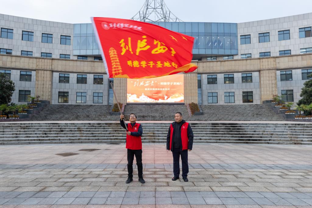 11月8日清晨,一场简朴而庄严的出征仪式在学校中心广场拉开序幕。陈鹏为实践团授旗,鲜红的旗帜迎风飘扬,象征着永不褪色的革命精神,也承载着组织的殷切期望。学员们精神饱满,满怀对革命圣地的向往与崇敬,踏上了追寻初心之旅。