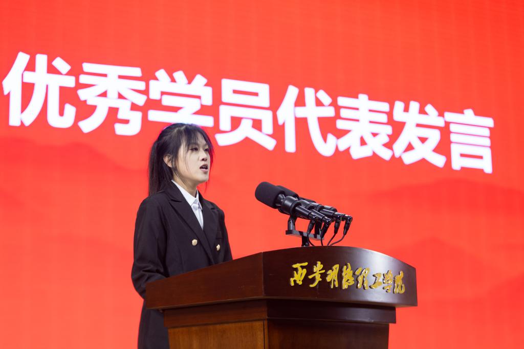 经济与管理学院徐烁晗代表全体党校培训班学员发言。她结合培训期间的所学所思所悟,分享了在理论素养、本领担当、党性修养等方面的提升,表达了坚定不移听党话、跟党走的决心,并倡议全体学员将党校学习成果转化为勤奋学习、刻苦钻研、服务人民、奉献国家的实际行动。