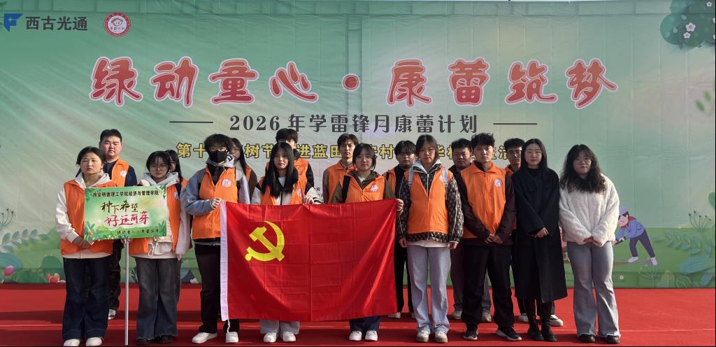 为积极响应全国学雷锋志愿服务号召,深入践行“绿水青山就是金山银山”理念,助力乡村振兴,3月10日,经济与管理学院学生党支部前往蓝田县安村镇新华村参加由中共安村镇委员会、蓝田县安村镇人民政府、陕西零贰玖公益服务中心等多家单位联合主办的“绿动童心·康蕾筑梦”—2026年学雷锋月康蕾计划第十季植树节公益活动。学院学生第一、第三、第五党支部师生党员、发展对象、积极分子代表参与了活动,让“党建红”在“生态绿”的生动实践中熠熠生辉。