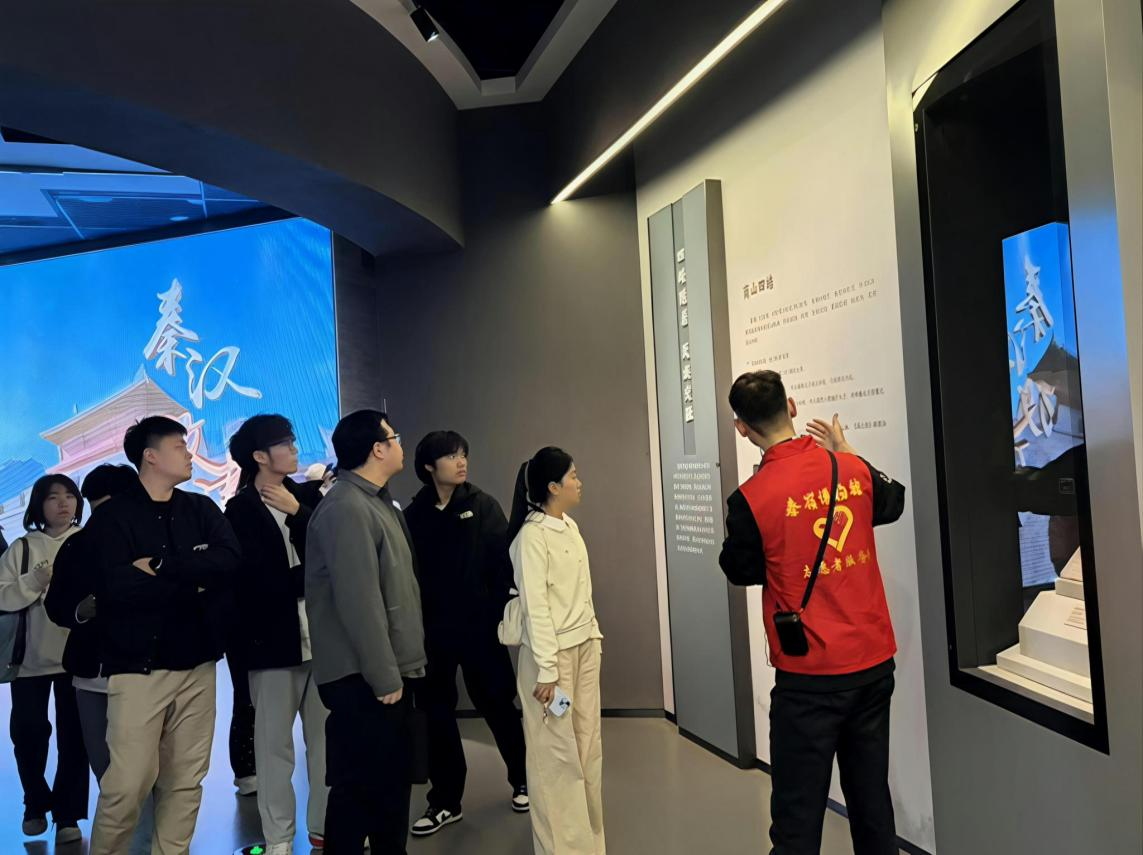 在讲解员的带领下,师生们对秦岭博物馆的国家定位、“山水玉璋”的建筑设计、“三展六厅”的展览陈列有了初步了解,参观了“和合南北 泽被天下——中国秦岭文化展”、“秦风楚韵 古道春秋——商洛历史文化展”、“红色热土 浴火新生——商洛革命记忆展”等展厅。展厅借助丰富标本与影像,大家直观感受了秦岭历经亿万年形成的独特地貌;展厅中多样的动植物标本与生态模型,展现其“生物基因库”内涵。同时,了解到秦岭作为“中央水塔”,在南水北调中线工程中的关键作用,沿线严格的生态保护举措,让大家深刻认识保护生物多样性、守护生态平衡及秦岭生态保护对国家水资源战略的重大意义和秦岭在中华文明发展中的重要地位。师生们对商洛境内的古人类演进、区域发展重大历史进程、人文风俗及商洛人民在中国共产党领导下积极投身革命和新中国建设的辉煌成就有了深入了解。