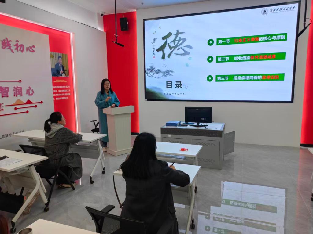 为深入贯彻立德树人根本任务,落实学校“课堂教学质量提升”工作要求,持续提升《思想道德与法治》课程教学质量与教师教学能力,11月19日至11月26日《思想道德与法治》课程组在凌云会堂218实验室开展磨课活动。本次磨课活动特别邀请西安财经大学马克思主义学院副院长任艳妮副教授莅临指导,课程组全体教师参与了此次磨课活动,以集体智慧打磨优质课堂,凝聚育人共识。