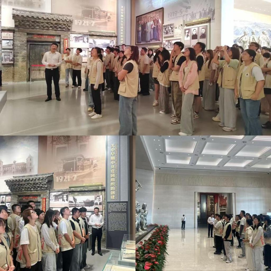 14日上午,实践团前往位于渭南市富平县的关中革命纪念馆。走进纪念馆,一幅幅珍贵的历史照片、一件件承载着革命记忆的文物、一段段感人至深的文字记载,瞬间将师生们带回了那个战火纷飞、激情燃烧的革命岁月。在讲解员的深情讲述下,大家系统了解了关中地区革命斗争的历史脉络,以及革命先辈们为了民族独立和人民解放,不畏艰险、英勇抗争的英雄事迹。从艰苦卓绝的武装斗争,到军民同心的鱼水情深,革命先辈们用鲜血和生命铸就的崇高精神,让每一位师生都深受触动。